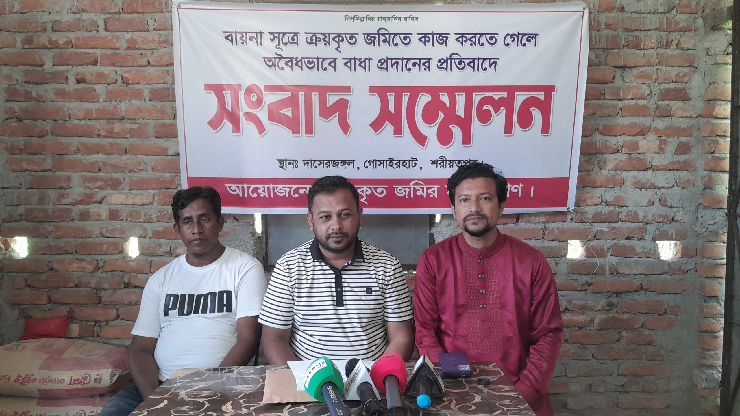 সংবাদ সম্মেলনে আক্তার হোসাইন কাজী জানান, দাসের জঙ্গল মৌজার আরএস ১০০ নং খতিয়ানের ৩০১, ৩০২ ও ৩০৩ নং দাগে বৈধভাবে ৫৫ শতাংশ জমি ক্রয় করেন। সেখানে তিনি প্লট তৈরি, মাটি ভরাট ও টিনশেড ঘর নির্মাণ করেন। তবে রাস্তার পাশে বাউন্ডারি দেয়াল নির্মাণের সময় গোসাইরহাট পৌরসভা বিএনপির আহবায়ক কমিটির সদস্য শাখাওয়াত হোসেন সুজন হাওলাদার পুলিশ ও লোকজন নিয়ে কাজ বন্ধ করে দেন।